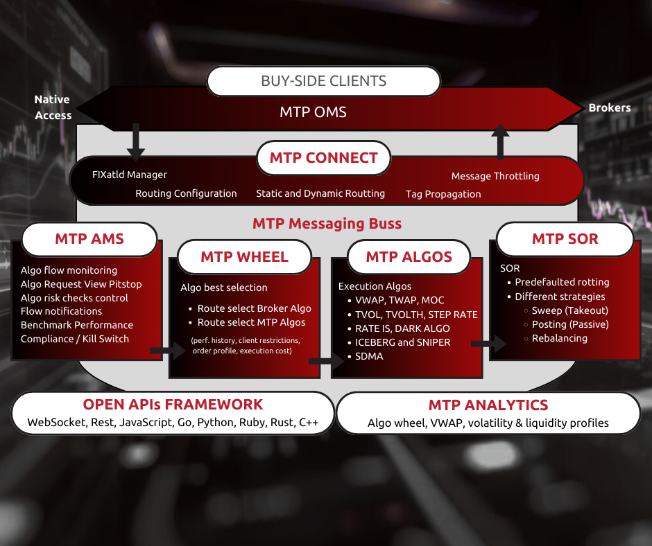 Trading Platform Execution Algorithms OMS – Order Management System Analytics Engine Algo API Framework Risk Management TCA – Transaction Cost Analysis Market Making Program Trading Market Simulator SOR – Smart Order Routing Connectivity Hub – MTP Connect Workflow Automation Technology & Service Open Architecture SaaS Delivery Cloud or on Premise Technology Consulting Tailored Solutions Insights Blogs Videos About Who We Are Our History Careers Marvelsoft Way Open positions Technologies Contact